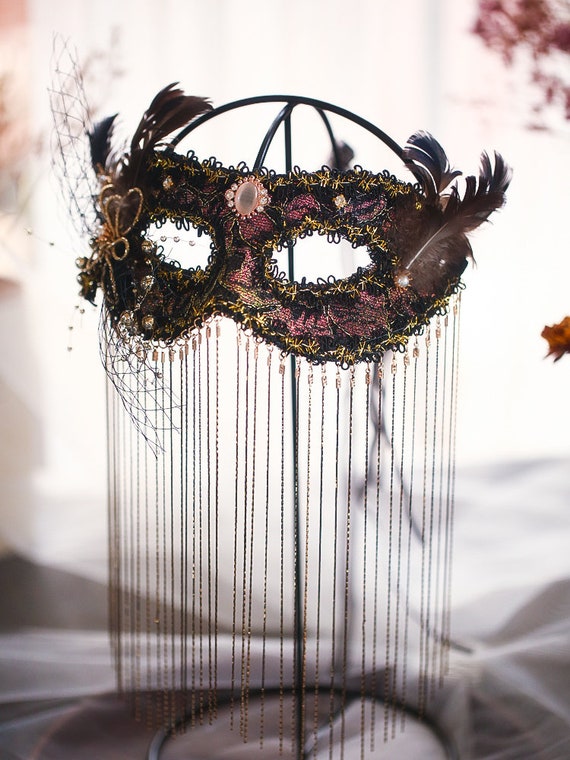 Makeup Dance Mask Black Mask Adult Dance Yarn Flower Lace Etsy