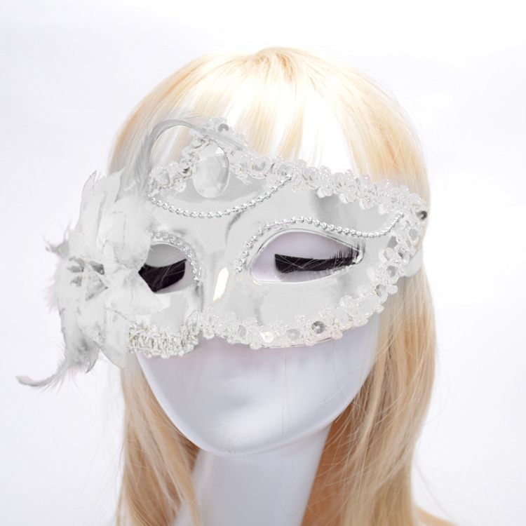 Halloween Masquerade Party Dance Plating Side Flower Feather Venice Princess Mask White